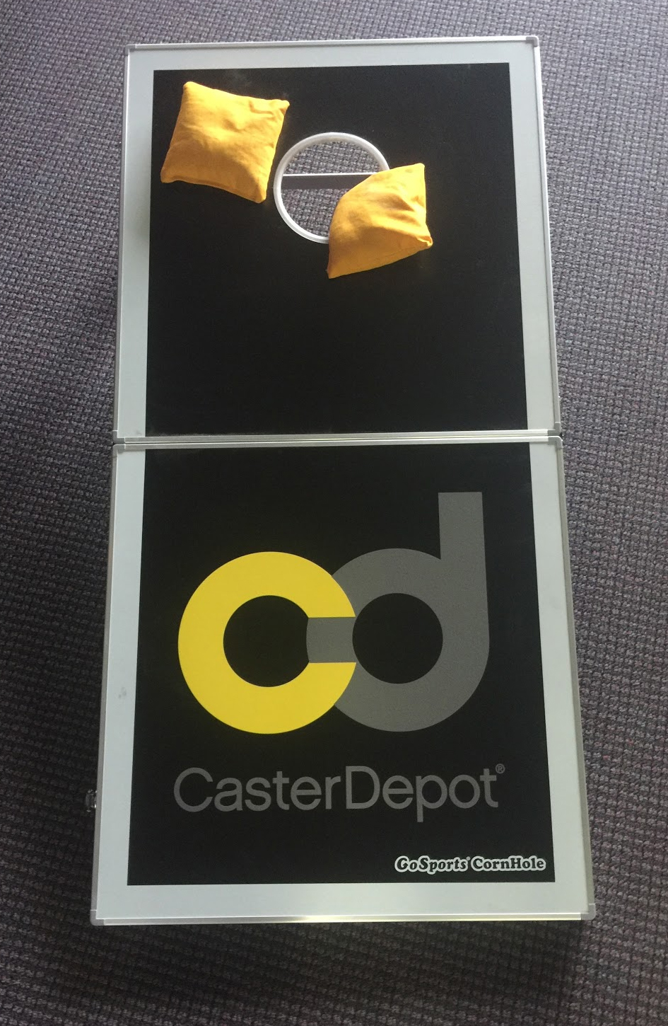 A portable, full-sized CasterDepot beanbag-toss game.