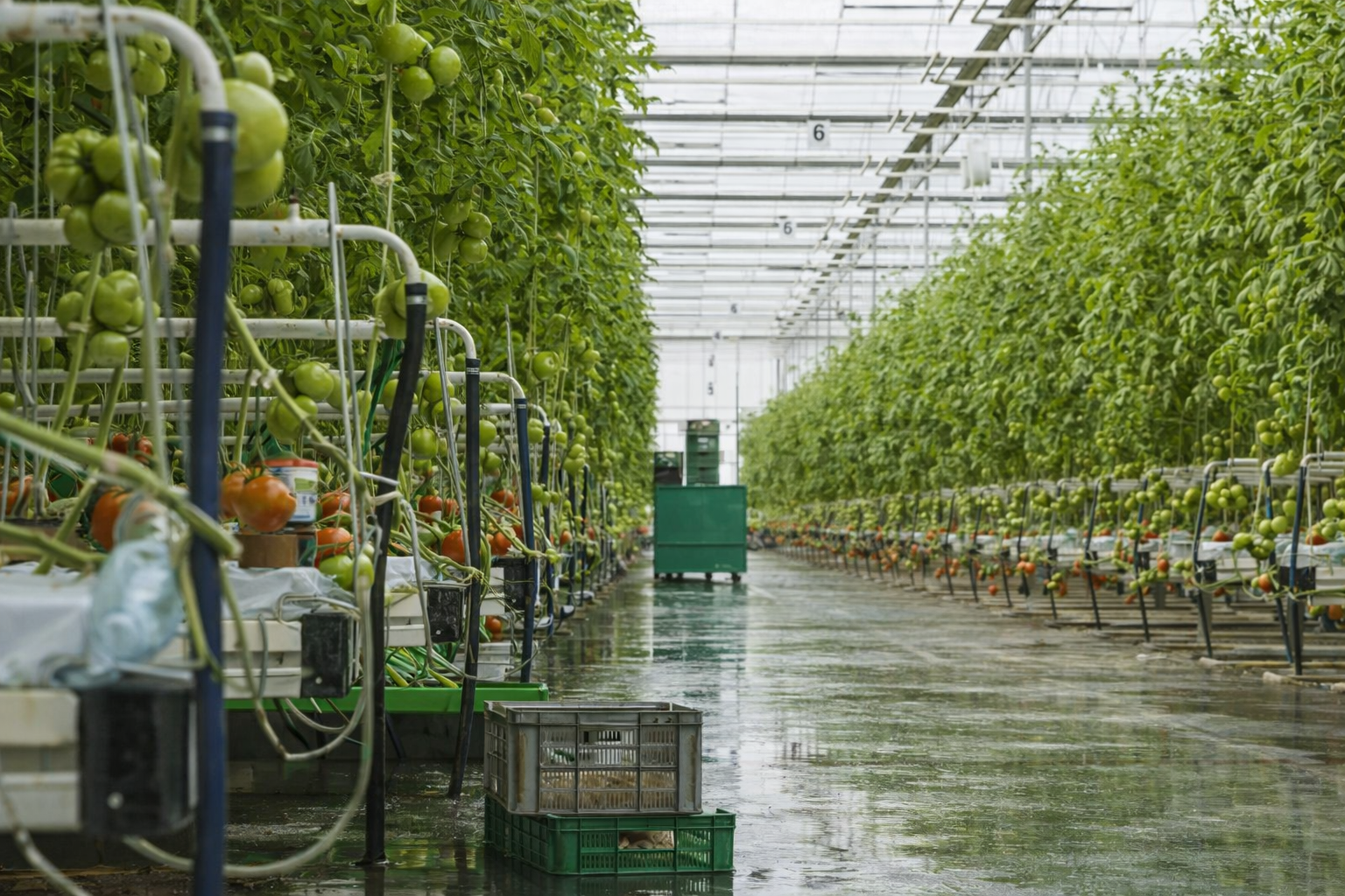 A regional greenhouse operator runs multiple facilities with rolling plant racks and irrigation carts in continuous circulation. Daily operations include scheduled watering cycles, misting systems, hose-down sanitation, and routine transport between indoor and outdoor growing zones.